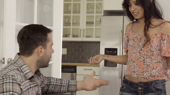 Одеваясь вызывающе, молодая брюнетка нарвалась на гнев родителя, она была наказана и оттрахана как сучка папой и сводным братом, которые были немного грубы и не стеснялись засаживать ей с двух сторон.