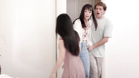 Чтобы, наконец, наладить отношения между сводным братом и сестрой, зрелая мачеха заставляет их трахаться вместе с ней в межрассовом тройничке, укрепляя семейные узы минетом и глубоким трахом.