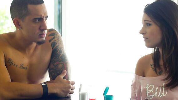 Постоянные смены настроения сводной сестренки, разозлили её брата, и он решил наказать её, парень порвал на юной брюнетке всю одежду и жестко оттрахал её в разных позах, залив её лицо спермой.