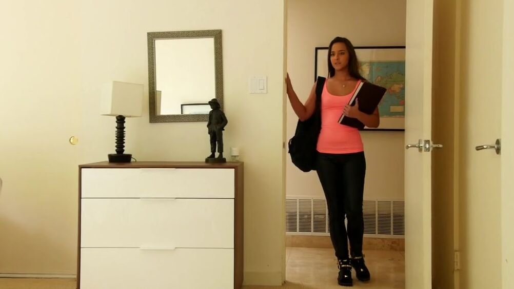 Возбужденный запахом трусиков сводной младшей сестры парень, теряет голову, когда она палит его и, порвав на ней одежду, он устраивает жесткий секс по принуждению, трахая загорелую телку.