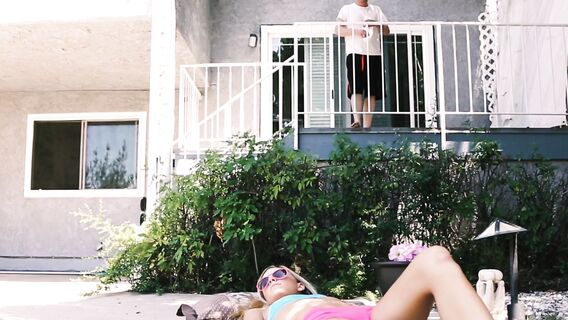 Сводный брат очкарик без ума от своей худенькой сестры блондинки, и ему выпадает счастливый случай помочь ей с кремом для загара, что перерастает в оральные ласки, а потом и классный трах в ванной.